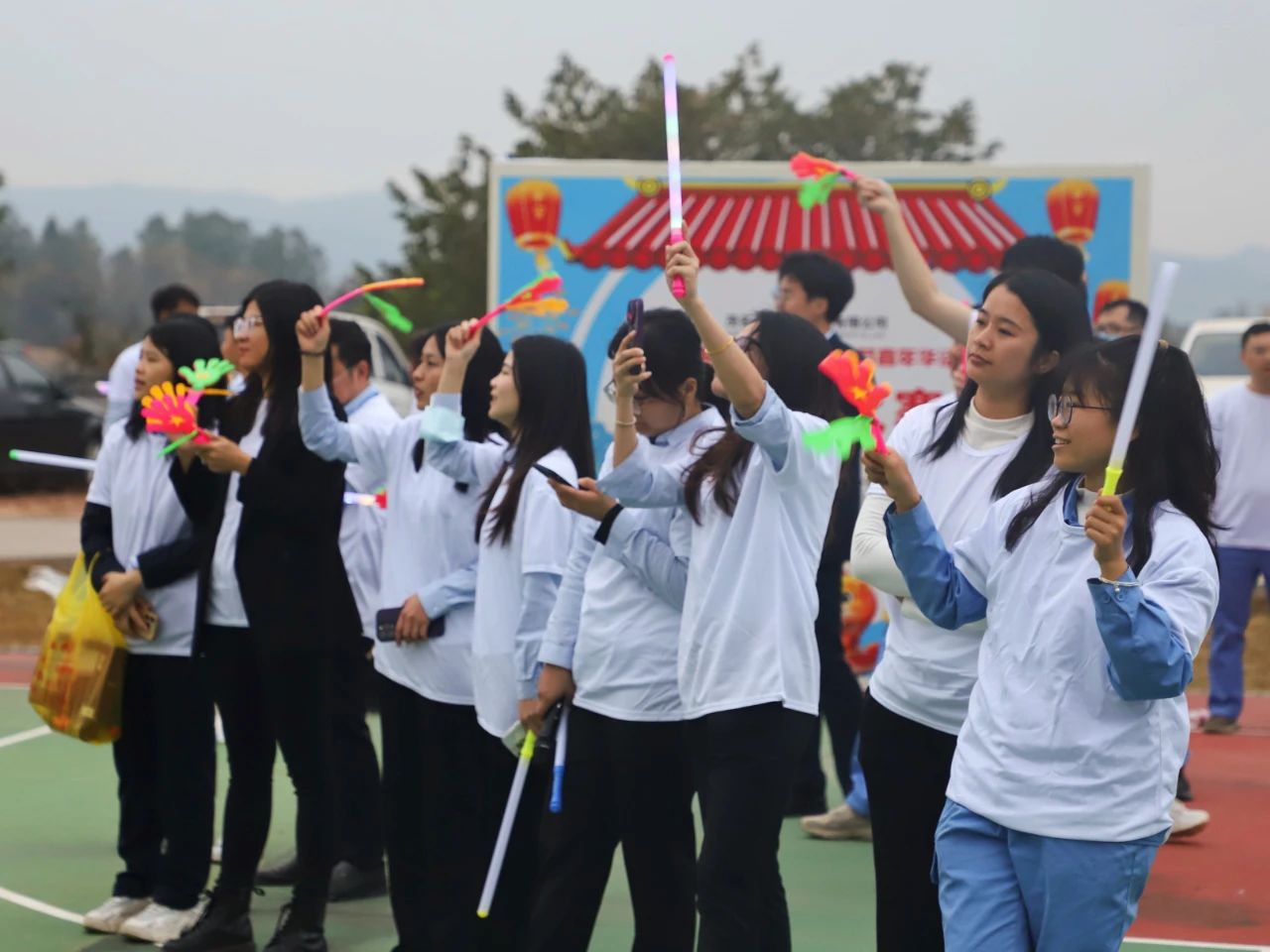 除此之外,在一片歡樂(lè)祥和的氣氛中,大家還即興以部門或個(gè)人進(jìn)行現(xiàn)場(chǎng)歌唱表演,游園活動(dòng)又秒切成“大型K歌現(xiàn)場(chǎng)”,在“歌手們”、“歌唱組合們”的高歌中,在“歌迷粉絲”的歡呼中、揮舞的熒光棒向天空傳遞彩光,發(fā)射快樂(lè)。