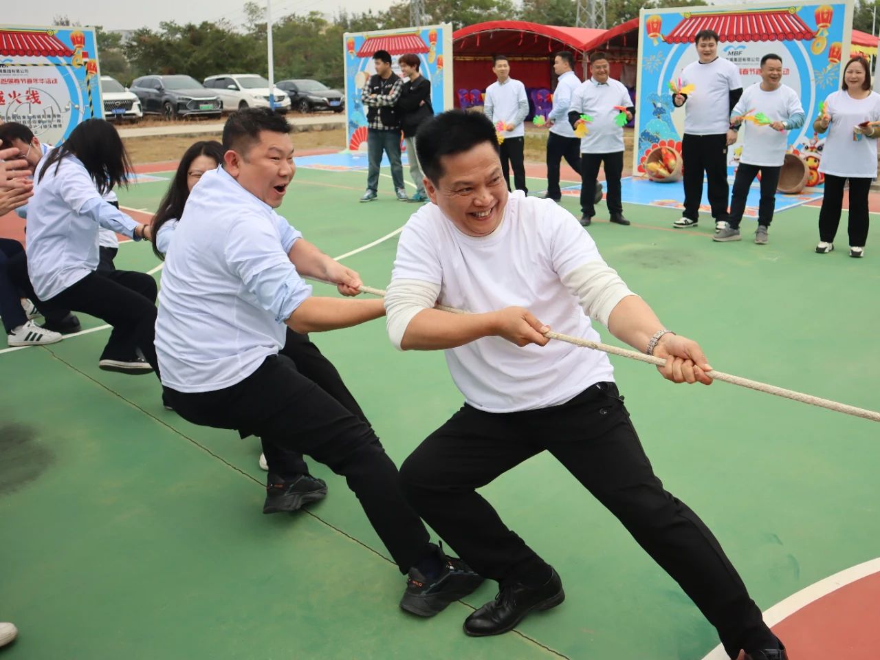 下午四時(shí)許,游園活動(dòng)正式拉開(kāi)帷幕。首先進(jìn)行的是拔河比賽,由集團(tuán)黨委書(shū)記、董事長(zhǎng)呂崇君親自帶領(lǐng)集團(tuán)領(lǐng)導(dǎo)班子輪番上陣,各部門代表踴躍參與,隨后是部門與部門之間自由角逐。現(xiàn)場(chǎng)中,拔河參賽隊(duì)員各就各位,扎好步、把好麻繩,當(dāng)比賽的哨聲響起,雙手緊握長(zhǎng)繩,憋足了勁拼命往后拉。“一二,加油;一二,加油”,現(xiàn)場(chǎng)啦啦隊(duì)員更是個(gè)個(gè)熱情高漲,紛紛在旁加油助威,吶喊聲、鼓掌聲、歡笑聲此起彼伏,精彩紛呈,賽場(chǎng)已然是一片歡樂(lè)的海洋。