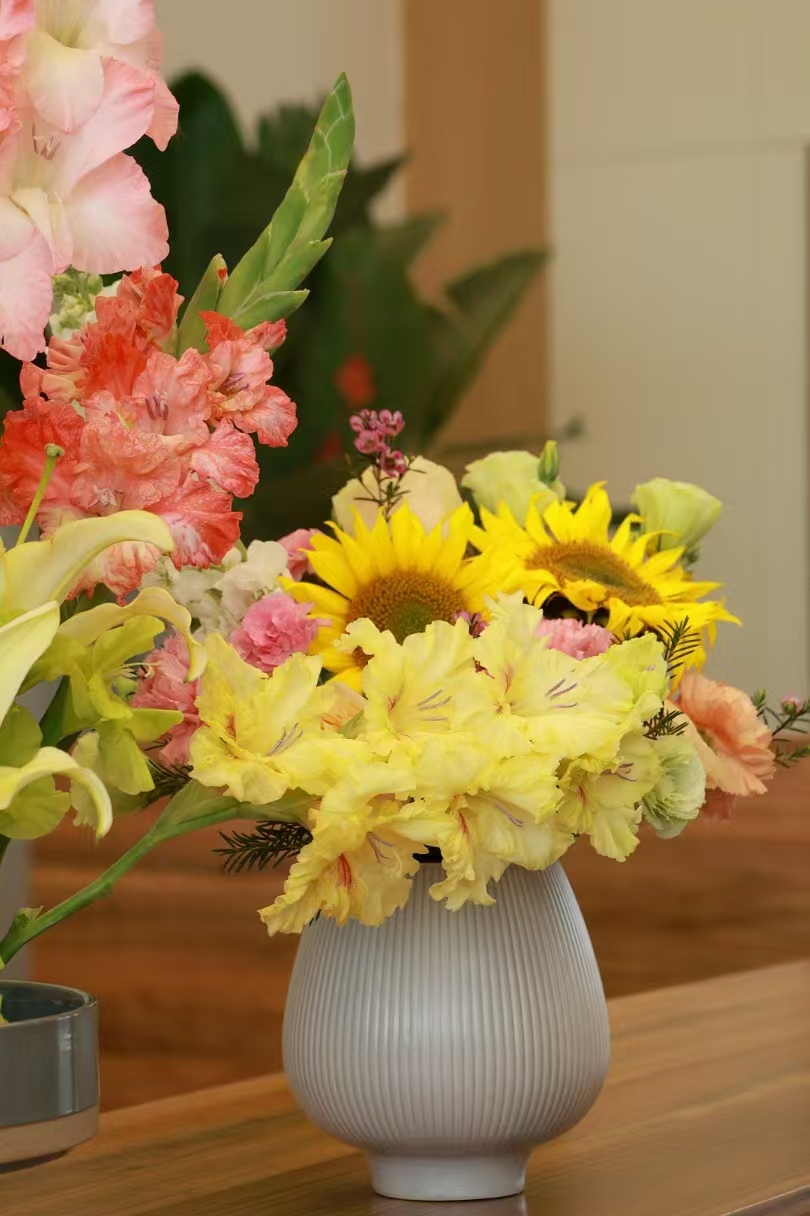 專業花藝師從色彩搭配、造型設計到花材養護展開生動講解,將插花藝術與生活美學娓娓道來。女職工們化身“春日造夢師”,修枝剪葉、構思層次,指尖流轉間,原本零散的花材逐漸煥發新生。有人將玫瑰與康乃馨編織成古典花甕,盡顯端莊大氣;有人以向日葵搭配綠植打造田園風花籃,充滿生機活力。現場歡聲笑語不斷,四十余件作品或清雅秀麗,或熱烈奔放,宛若一首首無聲的春日詩篇。
