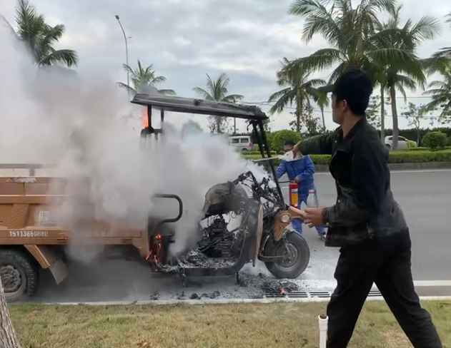 2025年11月20日中午,位于電城水質凈化廠斜對面的博賀灣大道上,一輛三輪車突發火情,火勢迅速蔓延,現場情況十分危急。