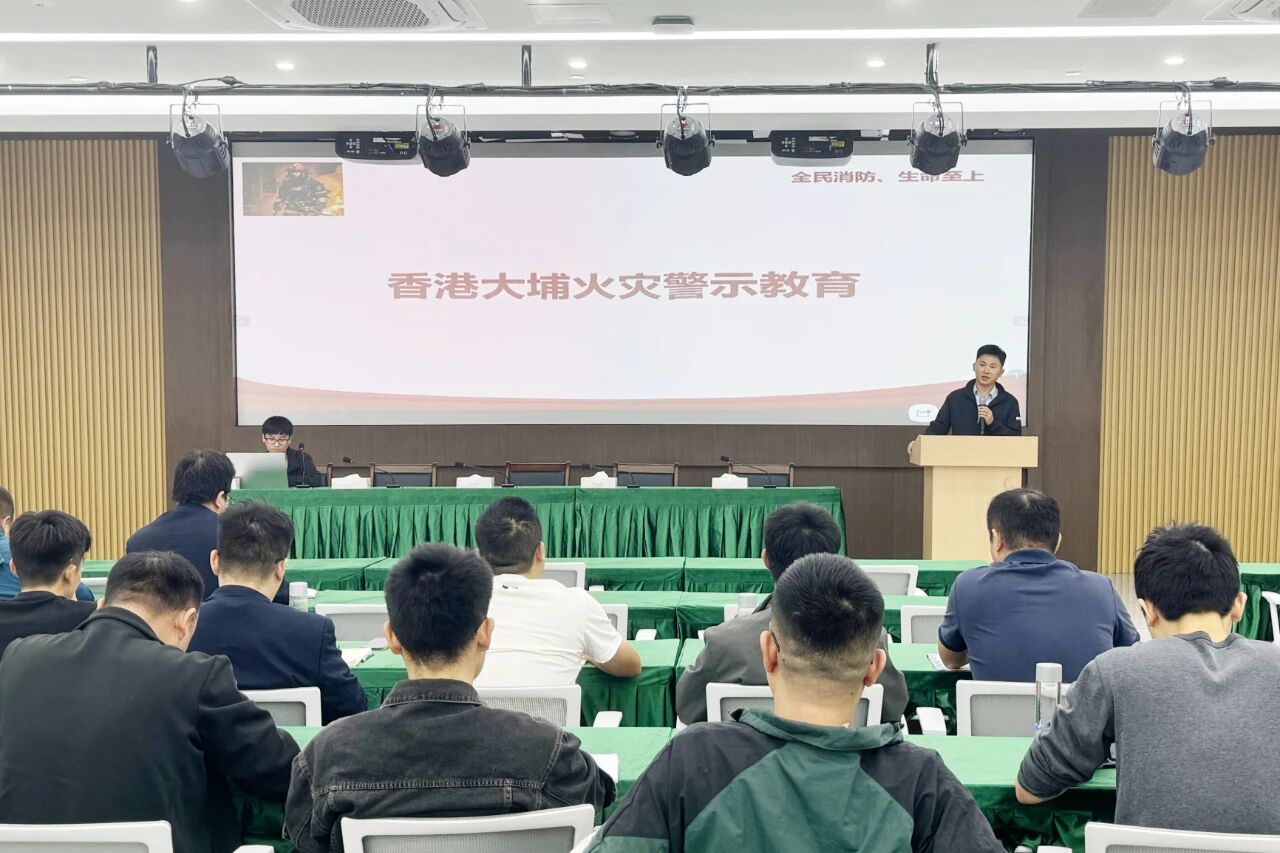 會議中,全體人員集中觀看了香港大埔宏福苑火災事故警示片。隨后,集團安全環(huán)保部結合事故案例,深入剖析火災暴露出的安全隱患,并通過專題講解,系統(tǒng)介紹了高層建筑火災特點、預防措施、初期火災撲救方法以及應急疏散逃生自救互救等關鍵知識與實操技能。